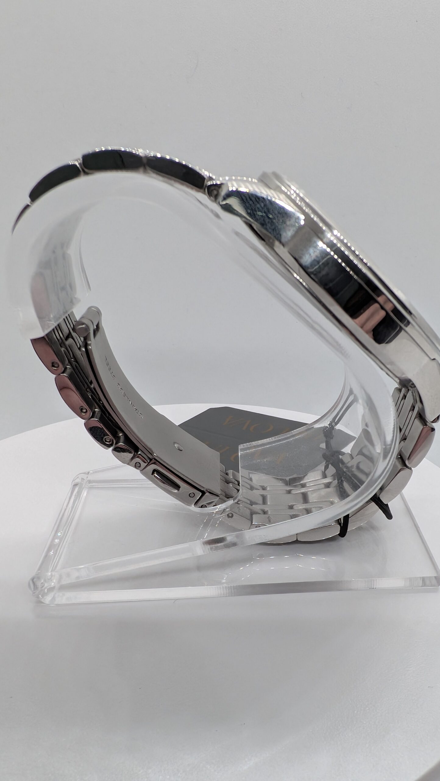 This watch is pre-owned and comes with the original box. Extra links are included in the bag, making it easy to adjust for the perfect fit. The watch has been well cared for and maintains its elegant appearance, making it a great addition to any collection or a solid gift option for a watch enthusiast.