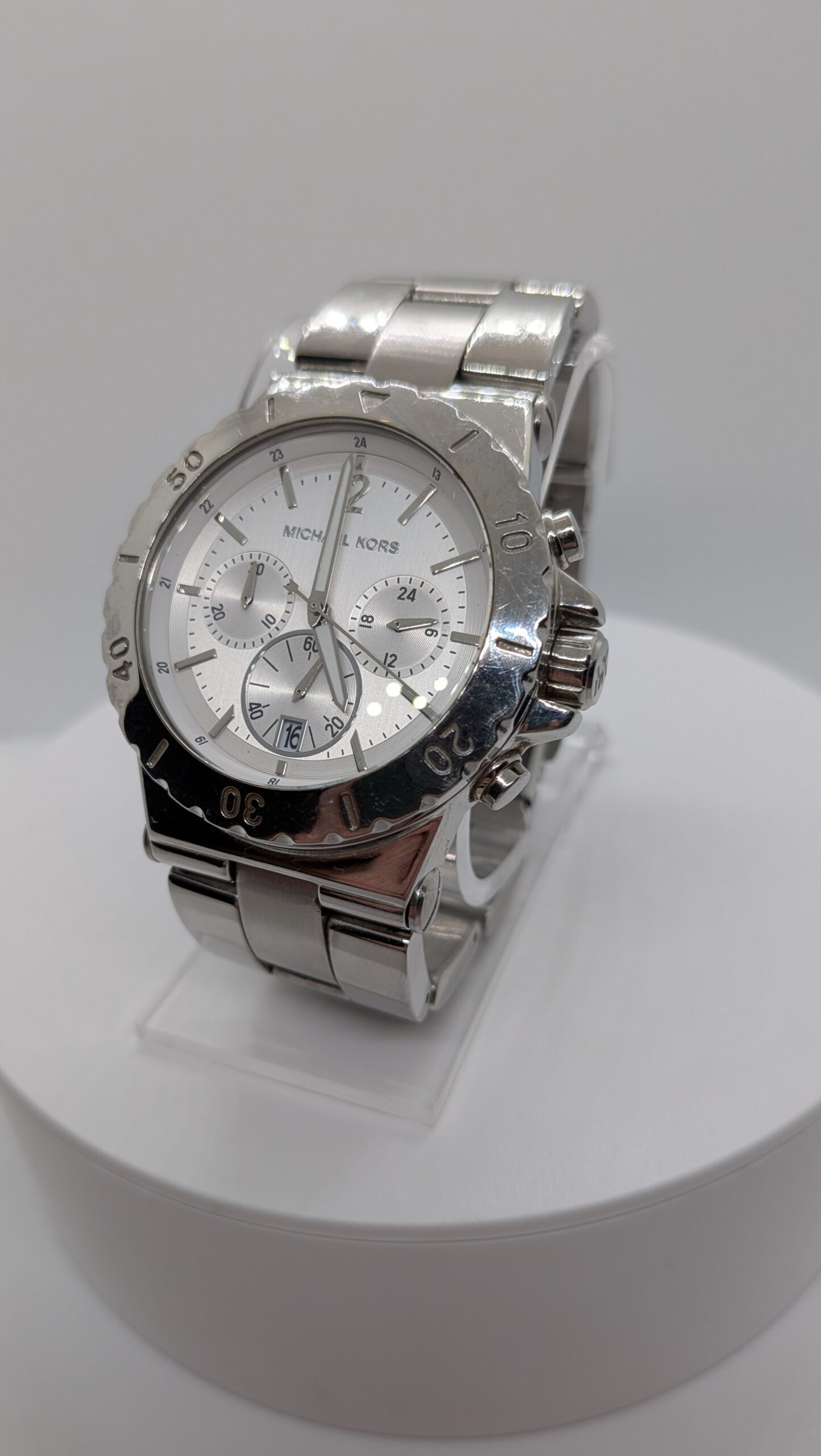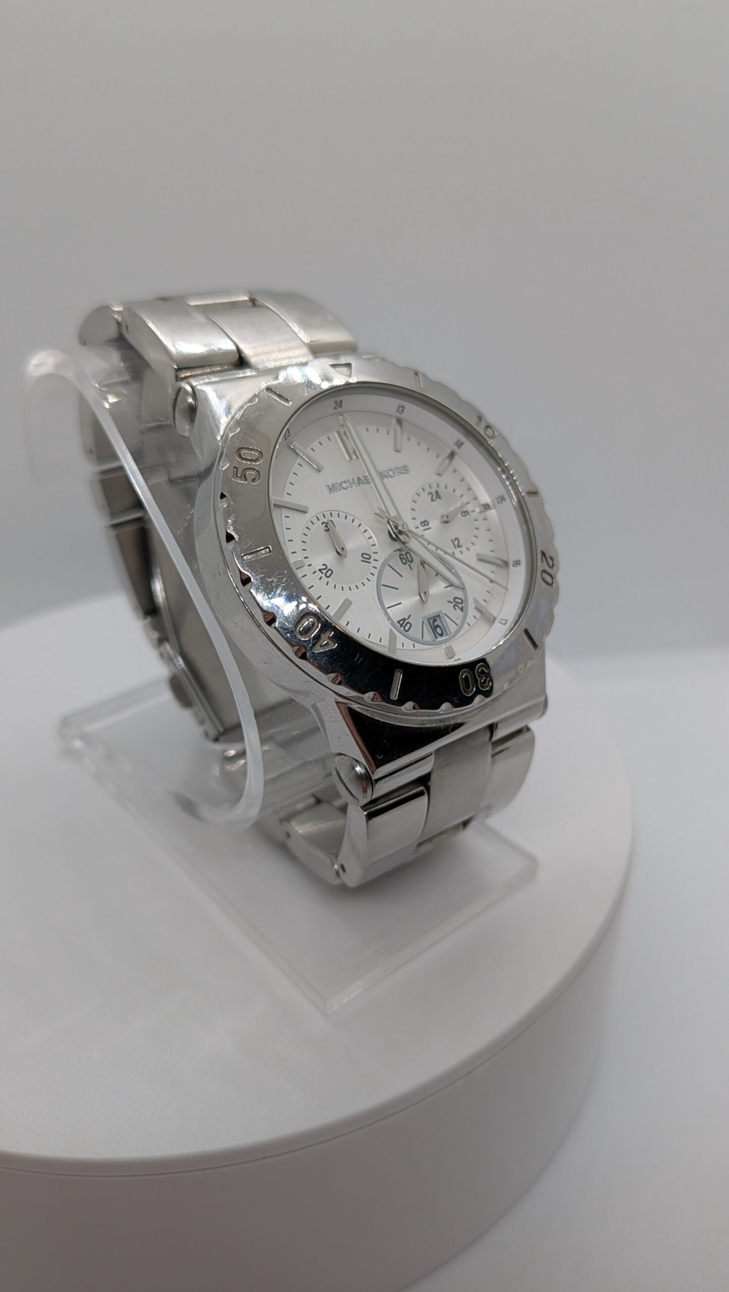 Stylish Michael Kors Chronograph Quartz Watch Silver Dial Date