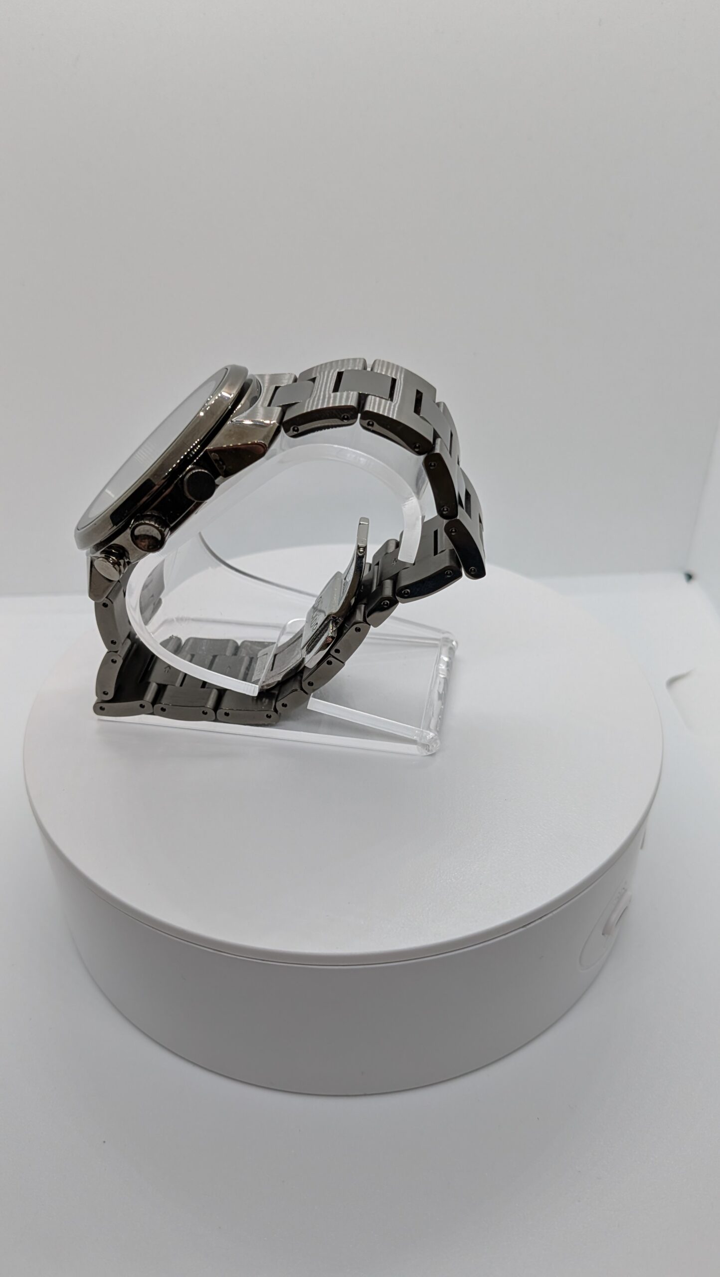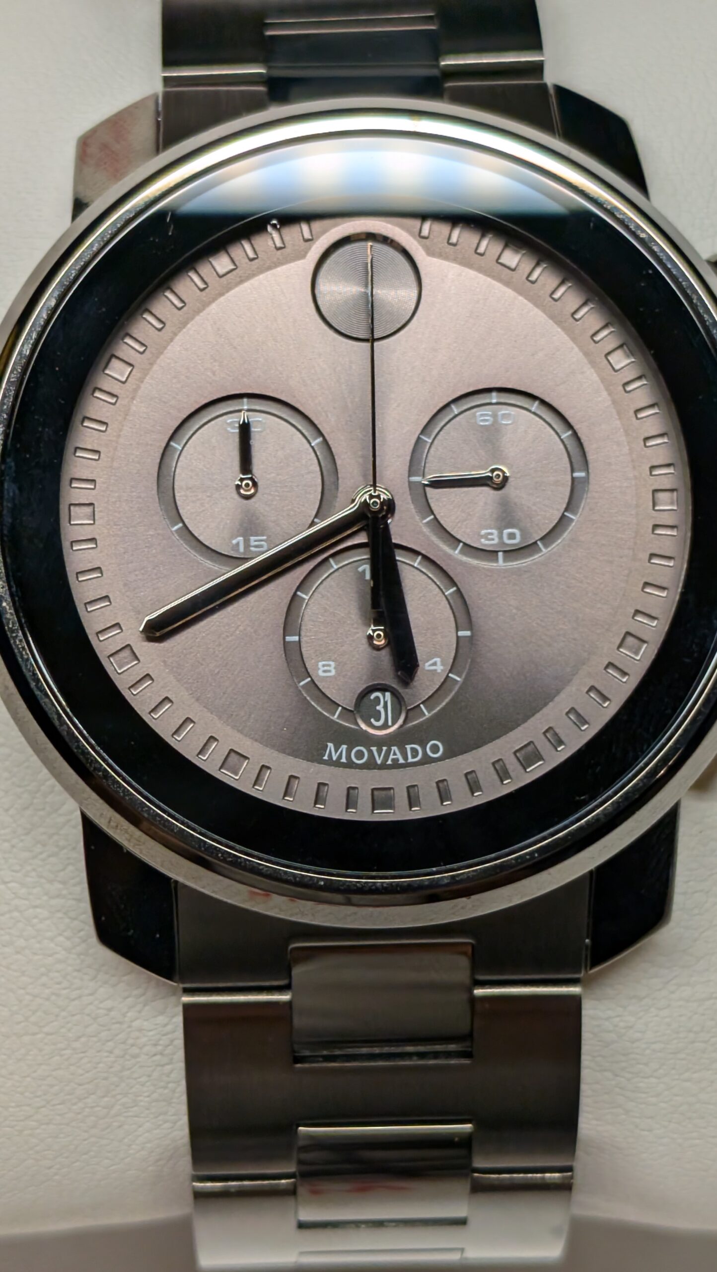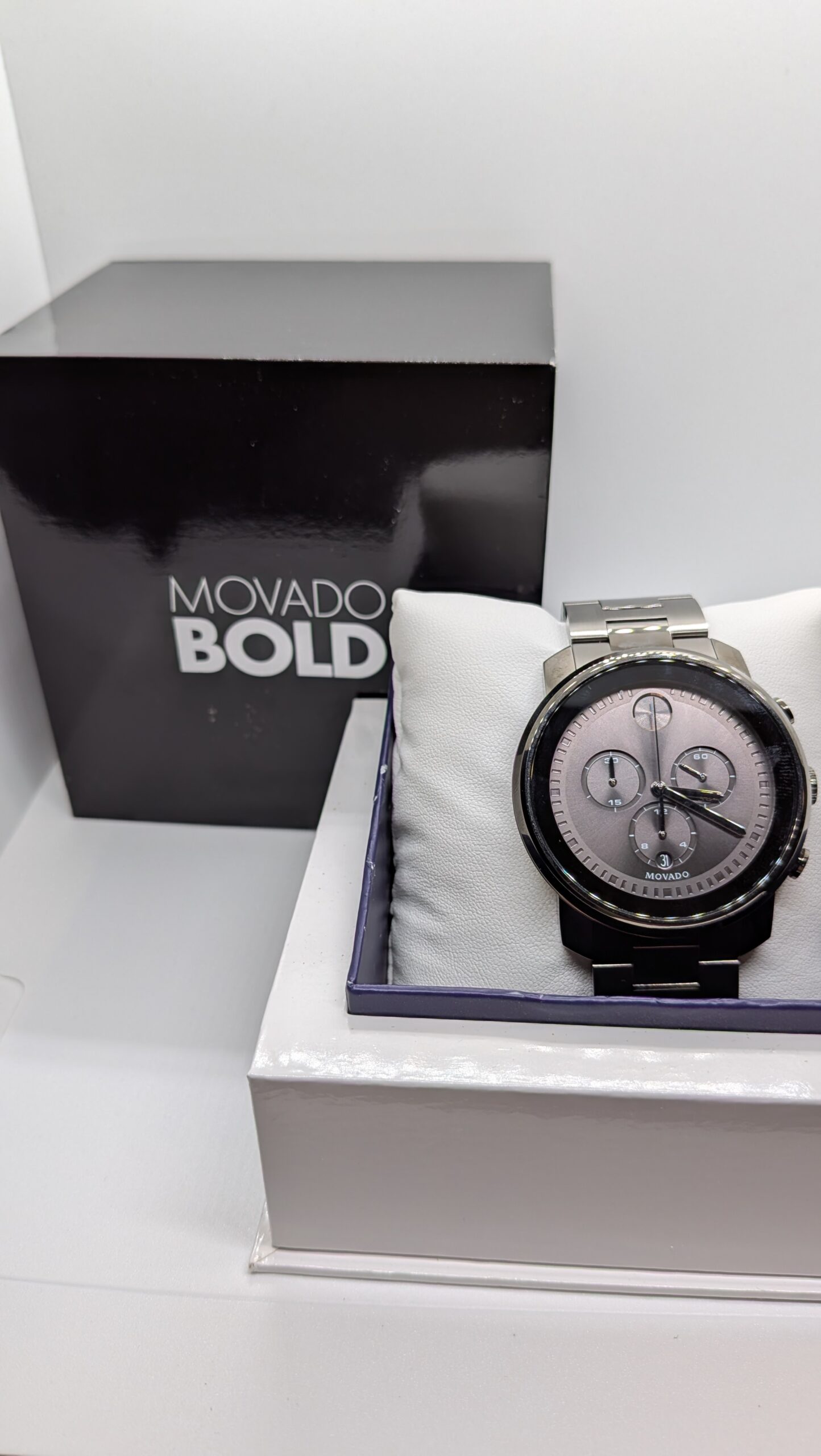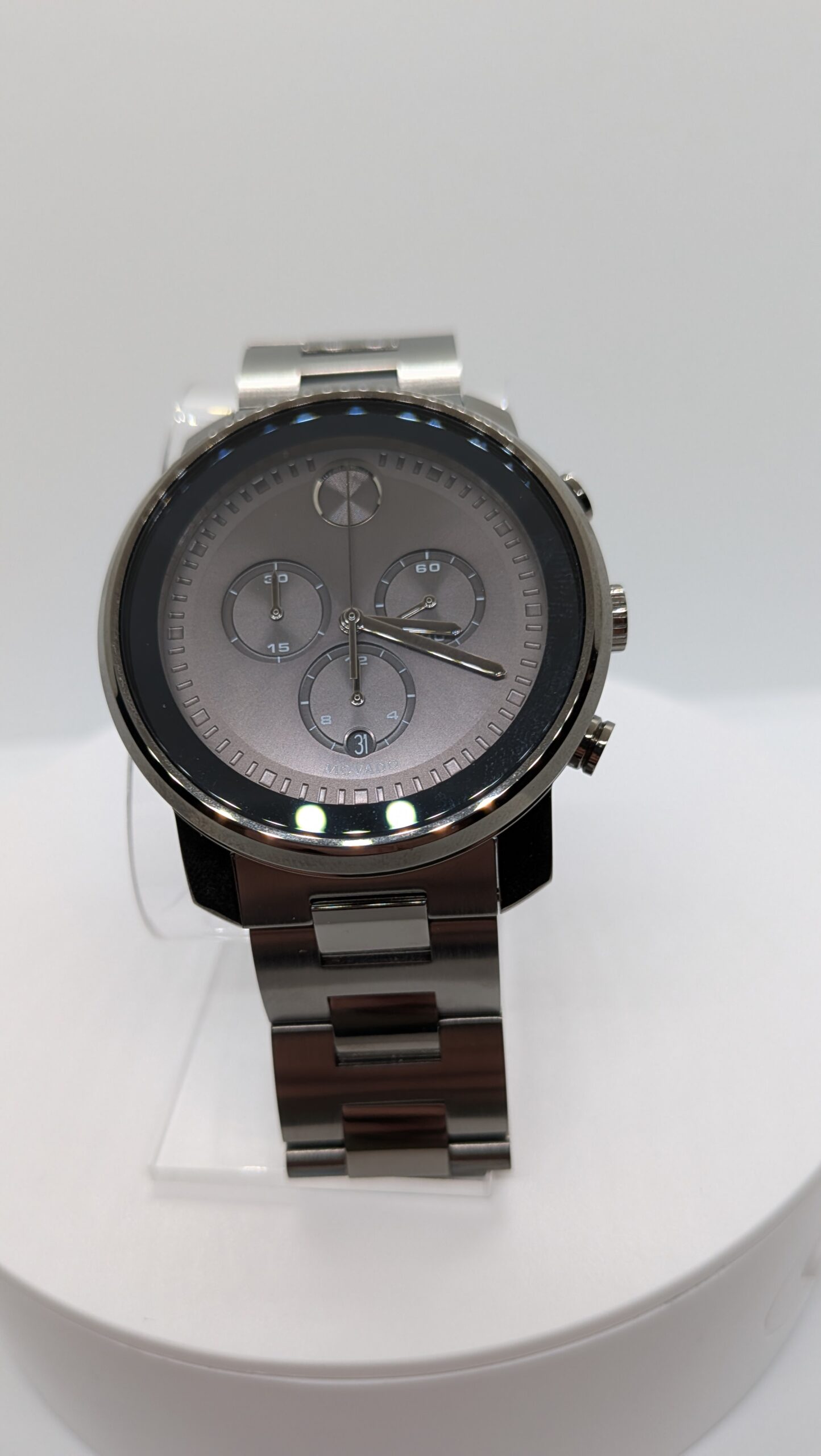 Powered by a reliable quartz chronograph movement, this watch offers precise timekeeping along with stopwatch features for everyday practicality. The durable ion-plated finish resists wear while maintaining its dark metallic sheen, making it ideal for both daily use and special occasions. Whether you’re adding a statement piece to your collection or selecting a premium gift, the Movado BOLD Metals Chronograph delivers style, performance, and unmistakable Movado presence.
